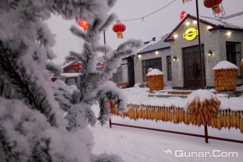 客栈是前后两进院落。院场寬敞,房间整齐,室内暖和,厅廊干净。后院泼建一个小小滑冰场,族客特别是孩子们可以在闲暇之余溜冰取乐。客栈既有火炕房,也有大床房;既有双人房,也有多人通炕房,想怎么住都可以。餐厅提供一日三餐,菜肴丰富。
