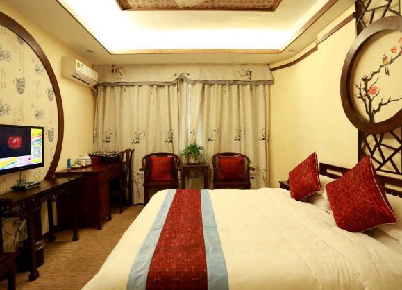 酒店位置闹中取静,近停车场,适合自驾游。庭院有个小小的流水小桥布景,大厅有个书画室,推开窗可略微看到远方苗山。