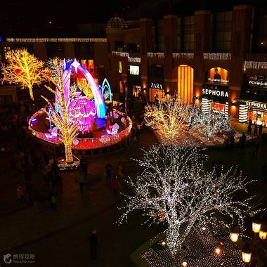 蓝色港湾是北京又一购物地标,欧式风格的建筑洋溢着浓郁的异域风情。开放式的广场中央有座音乐喷泉,夜晚在灯光的映照下宛如置身欧洲小镇。每到圣诞节,除了各种灯光秀大放异彩之外,整个小镇都播放着Jingle Bell,洋溢着节日的喜庆。