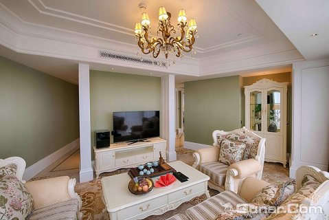 挑高设计,硕大的水晶吊灯雍容华贵,古典风韵