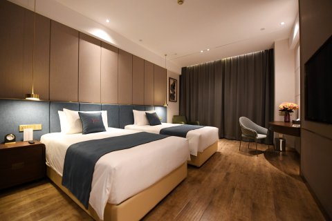 ins风的装修风格,酒店对面为万达广场,方便购物