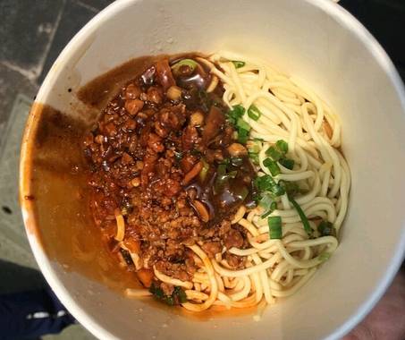 该店的芝麻酱稠稠的,非常香,面略硬却不觉得生,拌上一勺辣椒,回味悠长,如果觉得干的话,配上一碗蛋酒就刚刚好。