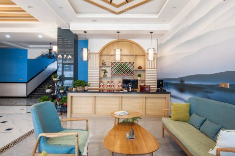 酒店位于云台山岸上服务区,酒店环境清幽淡雅,房间内有阳台可观赏美景,并有茶台可供品茶,酒店在景区内免费接送。