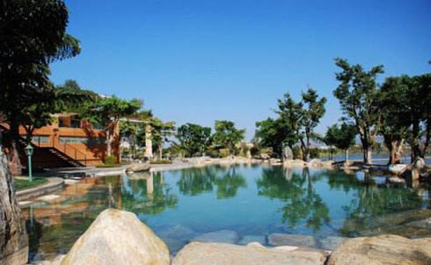 山庄位于红河州弥勒县雨补水库,临近太平水库;周围空气清新。这是一家以温泉为特色的度假酒店,装修气派不凡,又很有民族风,性价比高。客房宽敞明亮,提供24小时热水,独立淋浴间,洗漱用品一应俱全。同时还提供露营、游艇、垂钓、野炊等娱乐项目,配套功能齐全。山庄特有红河谷温泉,泉中含有硒元素。室外有湖景泡池,风景秀美,室内备有天然温泉,环境幽静私密,休闲养身的好去处。