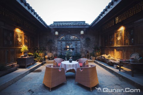 旅社是三进四合院,古色古香,很有味道,院子里可以喝茶。
