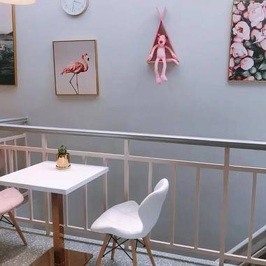 整个店铺都是非常少女心的装修风格,让人很舒服。一层是一个巨大的泡泡池,四周铺着粉色的垫垫可以坐着。二层大厅是简约的风格,白色和粉色的色调。