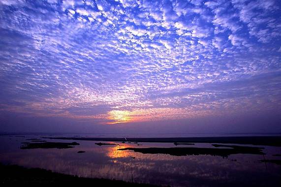 岳阳楼下的洞庭湖是远古时代云梦泽的遗迹,它的湖面十分宽广,自古就有“八百里洞庭”之说。