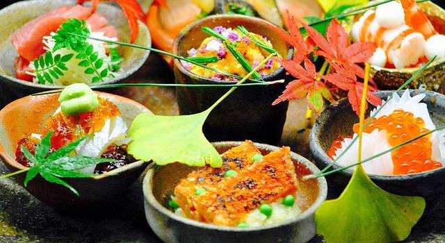 怀石料理原为日本茶道中,主人请客人品尝的饭菜,现成为常见的高档菜色。只限于一年四季应季的食材而做出菜单,最大限度利用食材的色泽、香味和味道。菜式风格考究,菜品量少精致