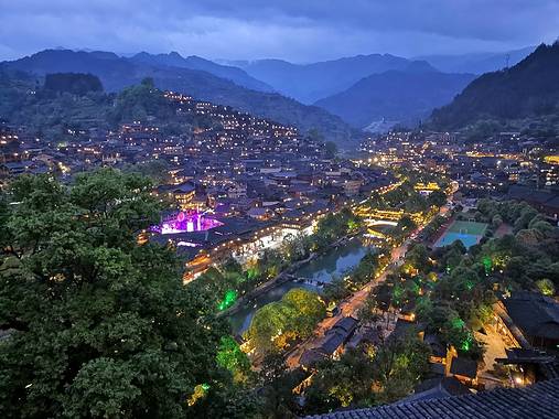 🔹当然,最美的还属这里的夜景,日落时分,择一处吊脚楼,登上高处,轻轻倚着“美人靠”,看苗寨从夕阳西下到华灯初上。夜幕降临,这里的千户人家会如约亮起檐下的灯火,浓情的端午来黔东南等一次从夜幕降临到灯火如星