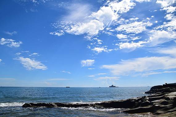 北海银滩湛蓝的海水,观赏水天一色的美景
