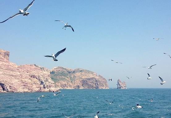 堪称万鸟岛,蓝天下看碧海 礁石上喂海鸥