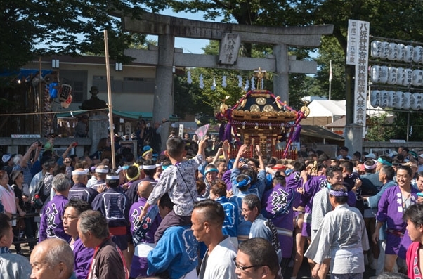 明治13年(1880)制作的八坂神社的千贯神舆,是在榉树材上雕刻精细的、附近最高龄的神舆。在祭典上,从一大早开始就会举行清扫路面的「ささら流し」活动。千贯神舆在9:00 ~ 17:00和预告大鼓的鼓声一起在町内进行巡回演出。
