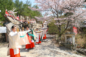 古法华寺内有白凤时代建造的日本最古老的石佛,也是日本认定的物质文化遗产。每年四月的第二个星期天,在石佛前都会举办古法华寺春祭,巫女与祭司会换上制服,演奏神乐,祈祷明年平安喜乐。