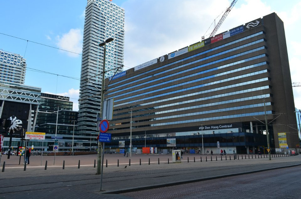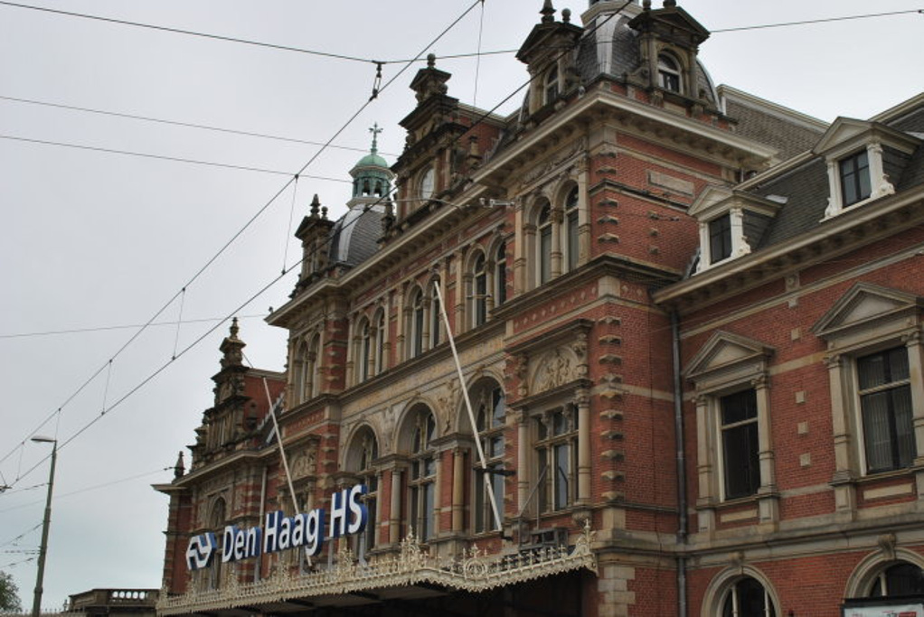 海牙火车站 (Den Haag Centraal)位于海牙城市的东北部,海牙大多数列车都从海牙中央车站开出或是在那里停靠。只有一些直达列车在市中心以南的荷兰HS(HollandSpoor)车站停靠。