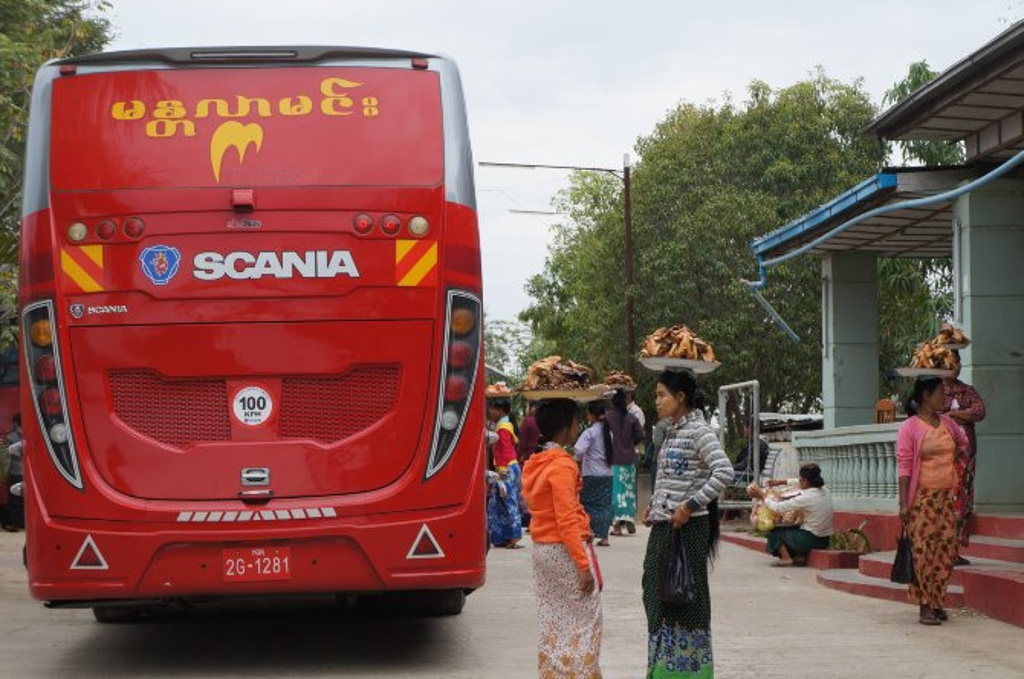 仰光有两大长途汽车站昂敏各拉长途汽车站(Aung Mingalar Bus Terminal)和莱达雅长途汽车站(Hlaing Thar Yar Bus Terminal)有前往缅甸其他城市的长途汽车。大部分长途汽车在晚上发车,在车上睡一夜到达目的地。大部分汽车需要旅客自行前往车站乘车,如前往蒲甘、曼德勒、内比都等地;有一些汽车则会去到你住的附近接你,如前往羌达海滩、维桑海滩等地。在仰光每条街道上都会有售卖车票点,只要看到店铺门口有相应客车图片就是卖票点,可以进去咨询购买并且可以选择普通车和VIP车及座位。值得提醒的是仰光的长途大巴上空调温度很低,一定要自备防寒衣物!如要去蒲甘、曼德勒、内比都,可在城北汽车总站乘坐长途巴士。经营长途巴士的公司有好几家,推荐乘坐JJ Express 的夜间大巴,早晚6 点各一班。购票可去中央火车站广场对面大大小小的订票点,也可在北边的Aung Mingalar Highway Station 购买。票价随着季节变化而变化,目前到蒲甘为18,500甲,到曼德勒为11,500 甲,到内比都为6,000 甲。