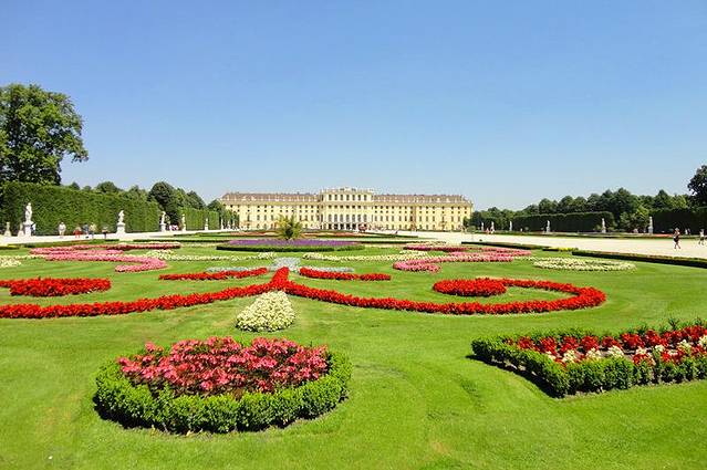 参观著名的美泉宫,宫殿规模和豪华程度与法国的凡尔赛宫相比有过之而无不及。