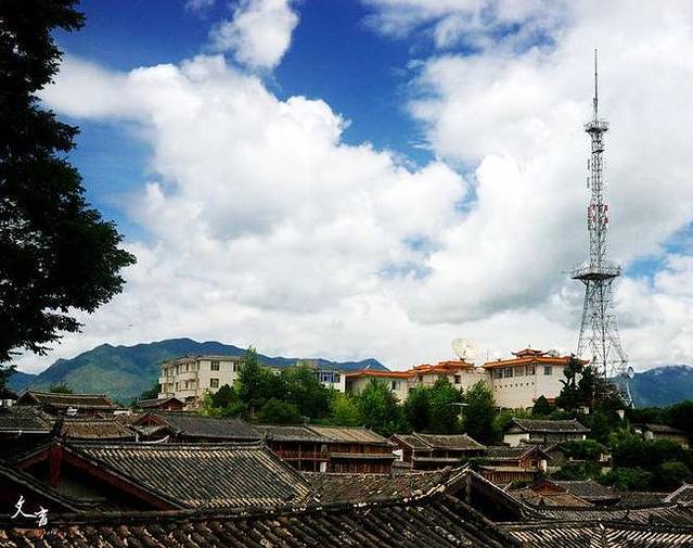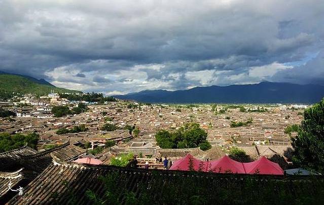 路上堵车一个小时,避雨一个小时,到达大研古城的入口处已经七点了,“梦幻丽江”帮我们的住宿安排在一个观景茶楼,在此可观丽江古城的全景,很不错的客栈,位置超好,也是喝茶的好地方。