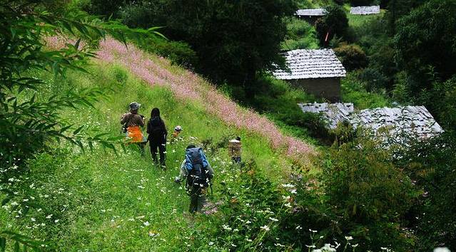 都觉得迷失天下客栈的条件够艰苦,饭菜还超级难吃。遂决定今天换到徒步者之家客栈。不得不说的是,迷失天下的服务员素质有待提高,听说我们要走,便找我收每人五块钱的进村费。 这两个客栈相距大概200米。实际上住宿条件还是迷失天下稍微强点,但是徒步者之家的餐食却好不少。