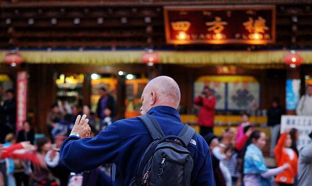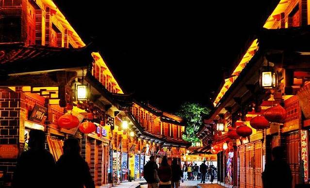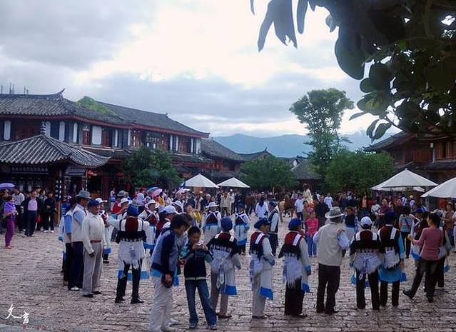 这是古城最热闹的地方,当地居民、中外游客等在此围成一个大圈唱歌跳舞,不亦说乎。