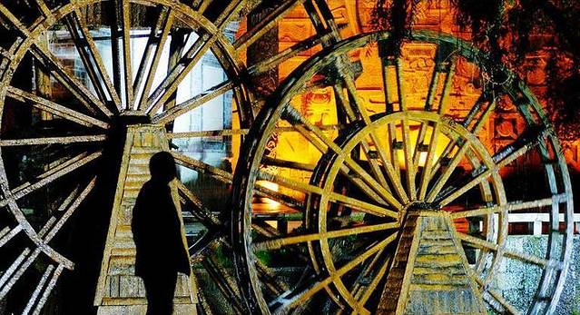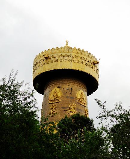 位于香格里拉独克宗古城中心的龟山公园的转经筒,它是世界上最大最重的镏金纯铜转经筒,已载入吉尼斯世界纪录,需要好几个人一起才能转动它。