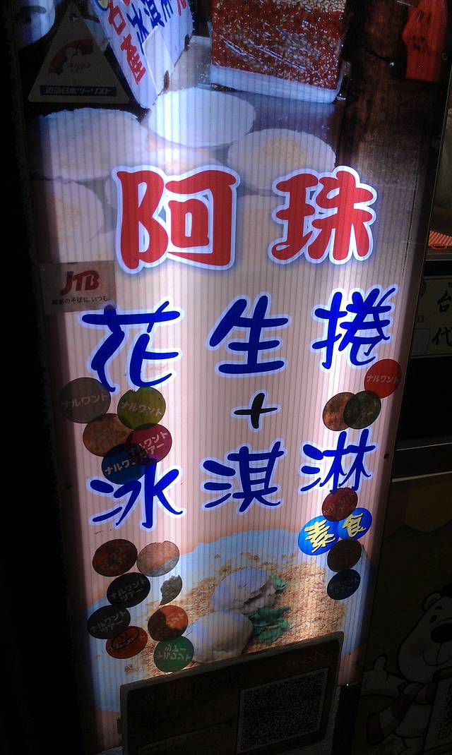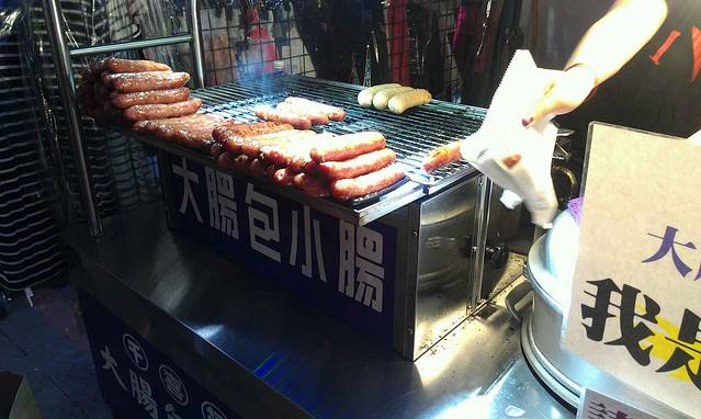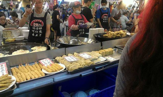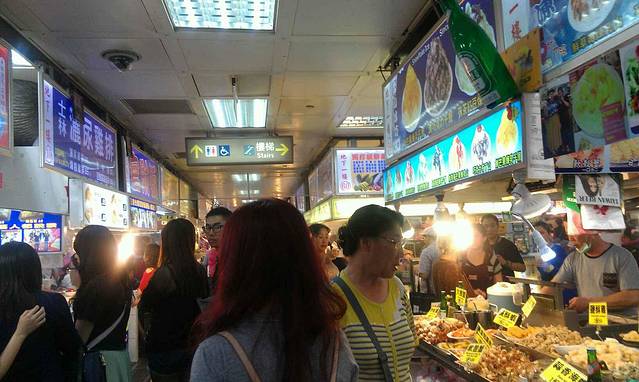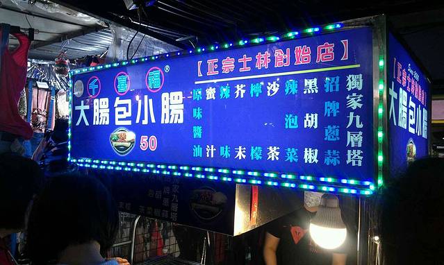 同样坐红26换乘捷运,士林站下车,hoho,又要开吃啦~各种小吃,还有卖衣服的,玩游戏的,很热闹。但是个人感觉不太舒服,不知道为什么,比传说中的有些距离吧,不过好在小吃的味道稍微弥补了一下。图片里那家冰很好吃哦,他家弟弟也在帮忙,很可爱的,和我至少确认了7.8次才点餐,一直逗呢~我们尝试了大肠包小肠(PS:好好吃,一定要拧着往外推,不要竖直推)、卤肉饭(PS:偶像罗志祥的最爱,强烈推荐)、天妇罗(不知道是什么做的,但是味道还不错)、之后又到了一家冰品店(PS:叫阿德家的冰,我们点了一碗抹茶红豆绵绵冰,老板从冰箱里面取出的冰就是绿色的抹茶色,好神奇)。之后我们到了水果店买了一些水果(有释迦和青枣,PS:士林的水果较贵,建议到外面的水果摊购买)。