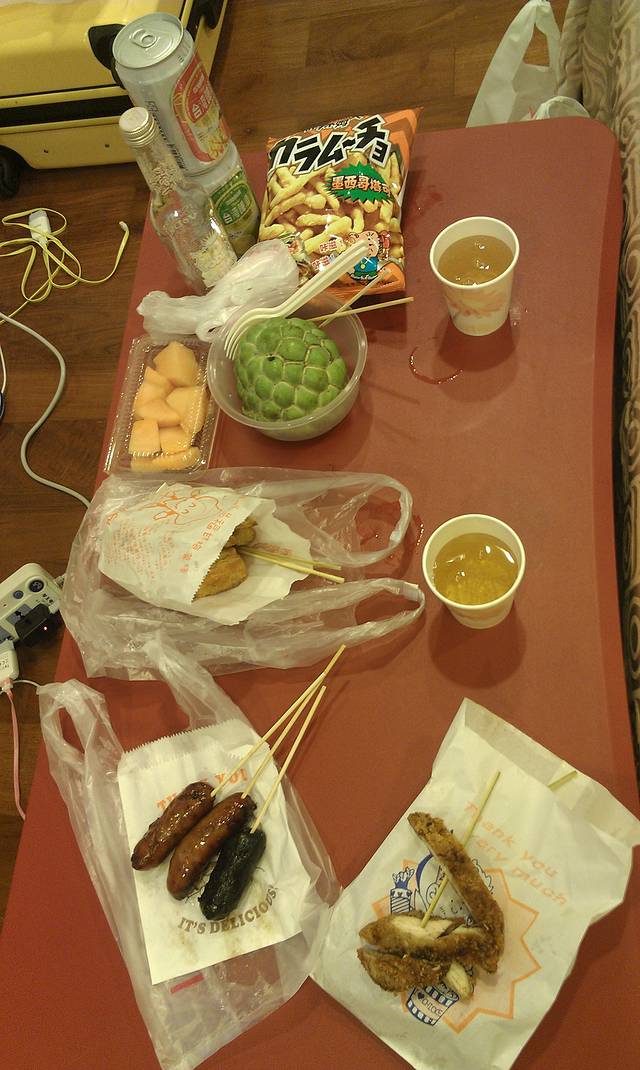 回去路上买了100NT三盒的水果,比台北要便宜很多!还有一些零食以及到了台湾就想喝但是一直没有买到的百事可乐,我妥协的买了一瓶可口可乐!晚上和闺蜜享受我们的旅途中美好幸福的时光!大餐啊,哈哈!PS:日月潭这边生活节奏很慢,几乎店铺晚上八点左右就关门了,所以晚上可以有时间在饭店看看台湾的娱乐节目,不错的享受!