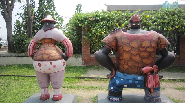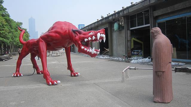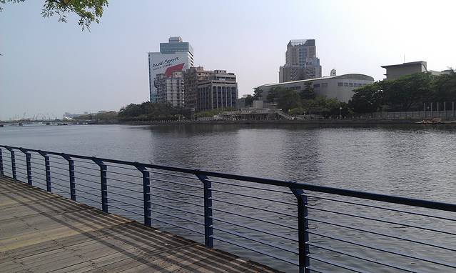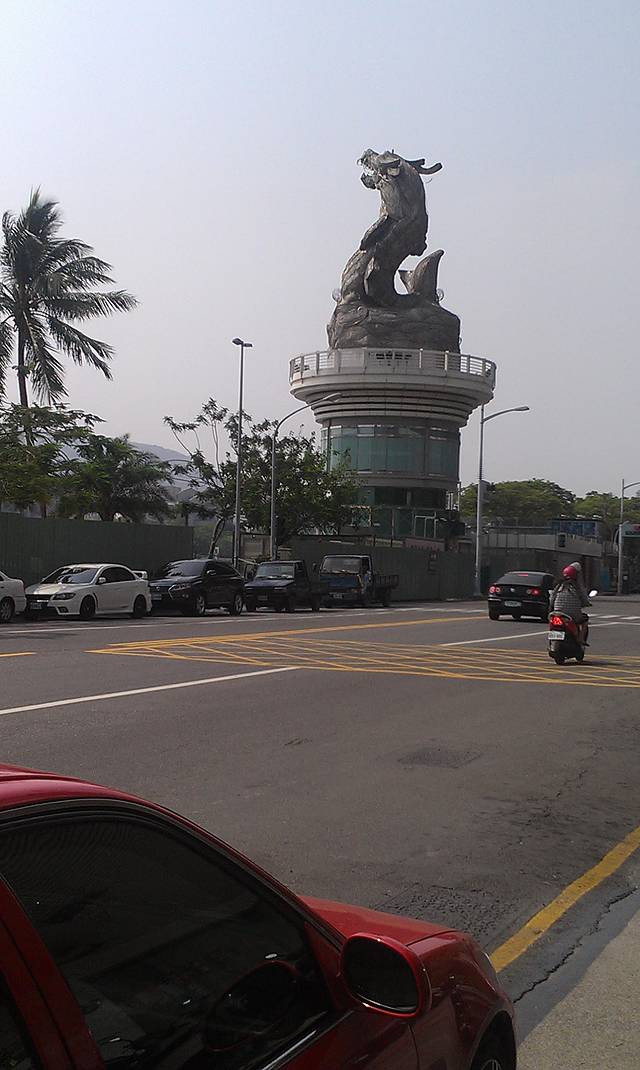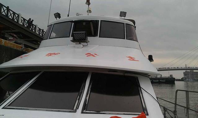 然后我们貌似又开始走,这天走的好多,⊙﹏⊙b汗问了几次路,终于找到爱河。和我们想象的差距有点大。最有趣的我们从路过爱河的桥上过,问人家路,人家告诉我们,你们不是刚从爱河过来的么,我俩瞬间无语。兜兜转转,终于找到坐船的地方啦,是在一个叫鳌的雕像下面,记住这标志物会比较好找。下午3点第一班船,我们还等了很久才开始,人也不多,第一班船也只坐了一半,我们后一班还没我们船上人多,不知道是不是平日的关系,船票120nt/人。转了一小圈,不是太远,解说挺有意思,吹吹小风,知道爱河是连着海的,还有周边有很多码头,回程~