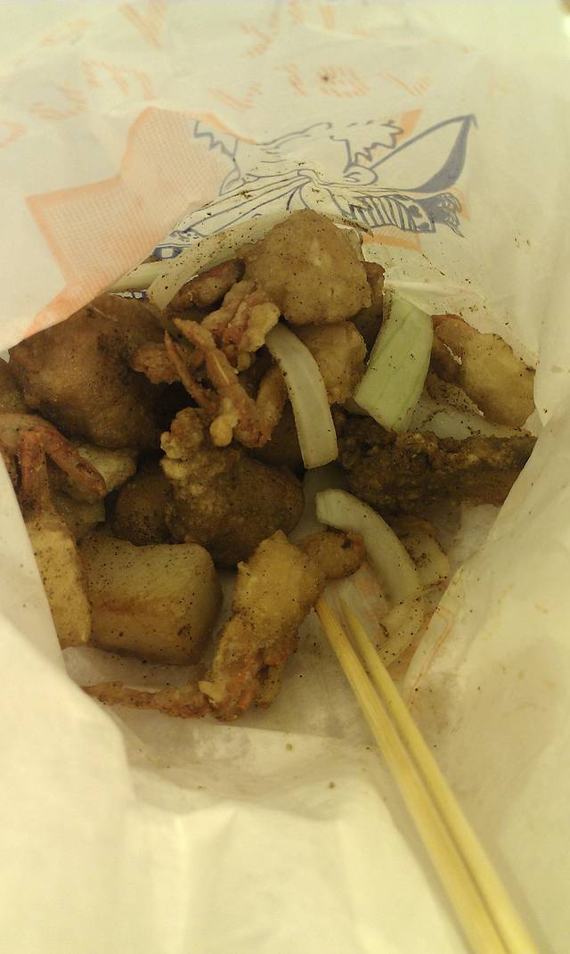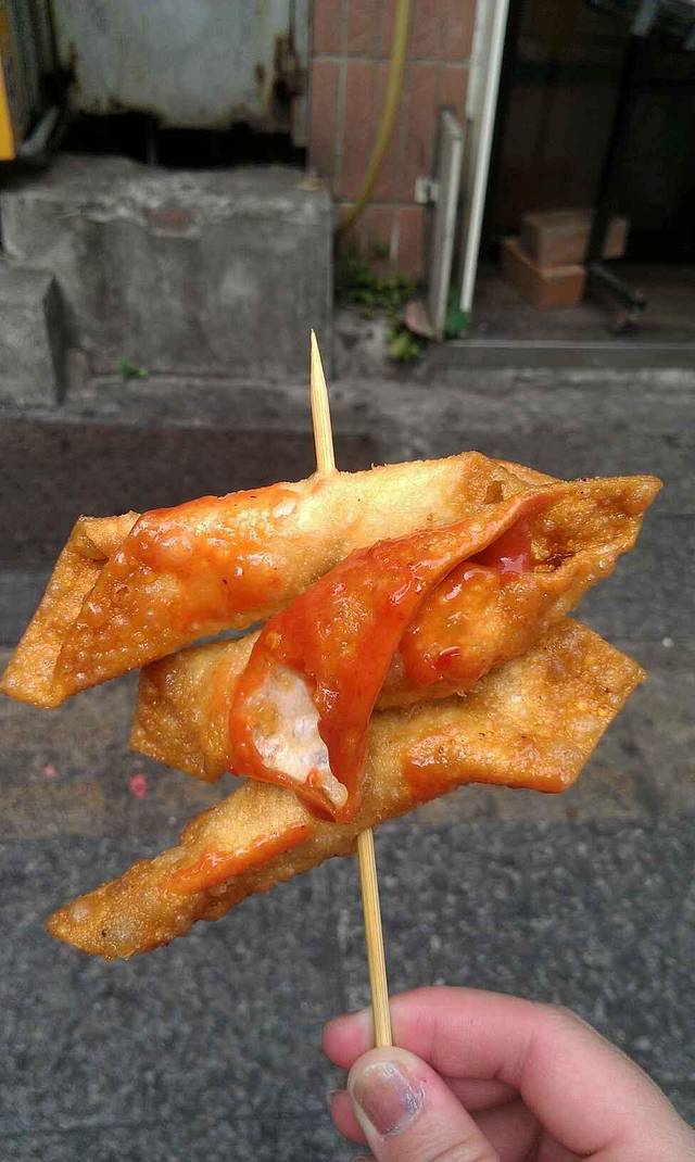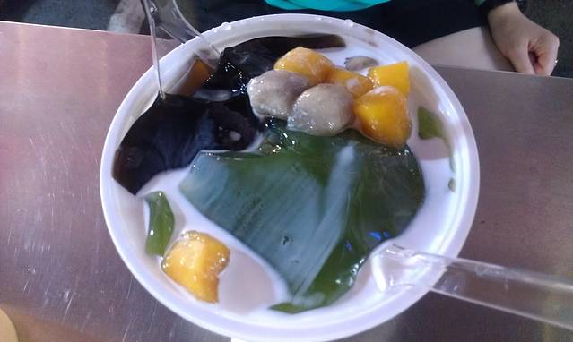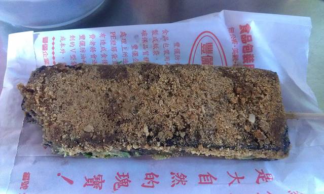 从梦时代坐接驳车返回捷运凯旋站,然后走路15分钟就可以到高雄最大的凯旋夜市!这也是饭店老板给我们推荐的,来到这里真的让我们大开眼界,这里分为10个区,一个区就是一条街,每条街又分为美食区和娱乐区!不知道是不是我和闺蜜太累了,我们逛了5个区腿就已经不是我们的了!马上找个摊位坐下来品尝美食!ps:这里强烈推荐大家可以保存体力用一个晚上来逛,真的不错!我们吃了炸杏鲍菇、鸡翅包饭、木瓜牛奶、猪血糕还有我们最爱吃的阿q冻圆,我们觉得好吃又打包了一份!冰冰凉凉QQ的!真的值得推荐!