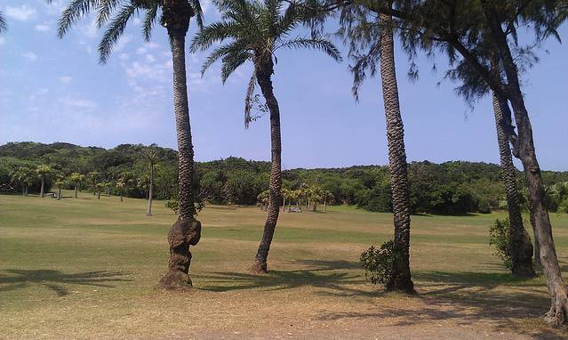 最南端是垦丁半岛南部的尽头,我们再返回的路上再欣赏其他景点,第一站就是鹅銮鼻灯塔,到了这里竟然和在照片上看到的景色一模一样的,蓝蓝的天空映照着白色的灯塔,真的好美,让人忍不住的按下相机快门!这里也有一个观海平台,据说是离海最近的地方,还有可以看到大尖山的观景亭和亲吻石
