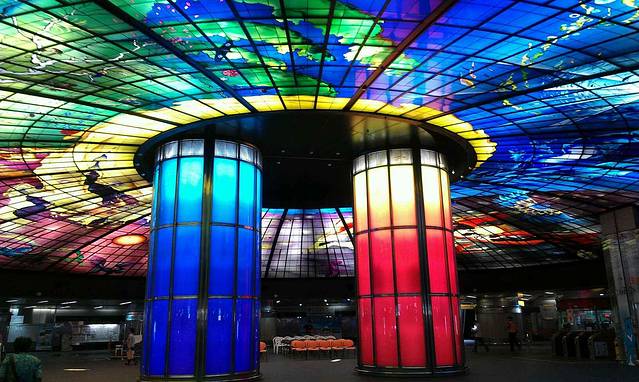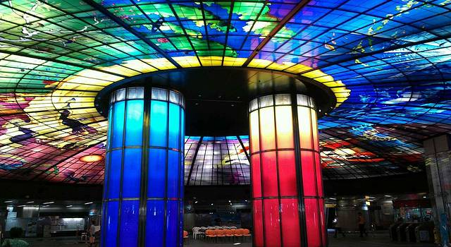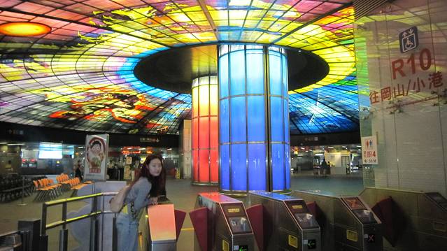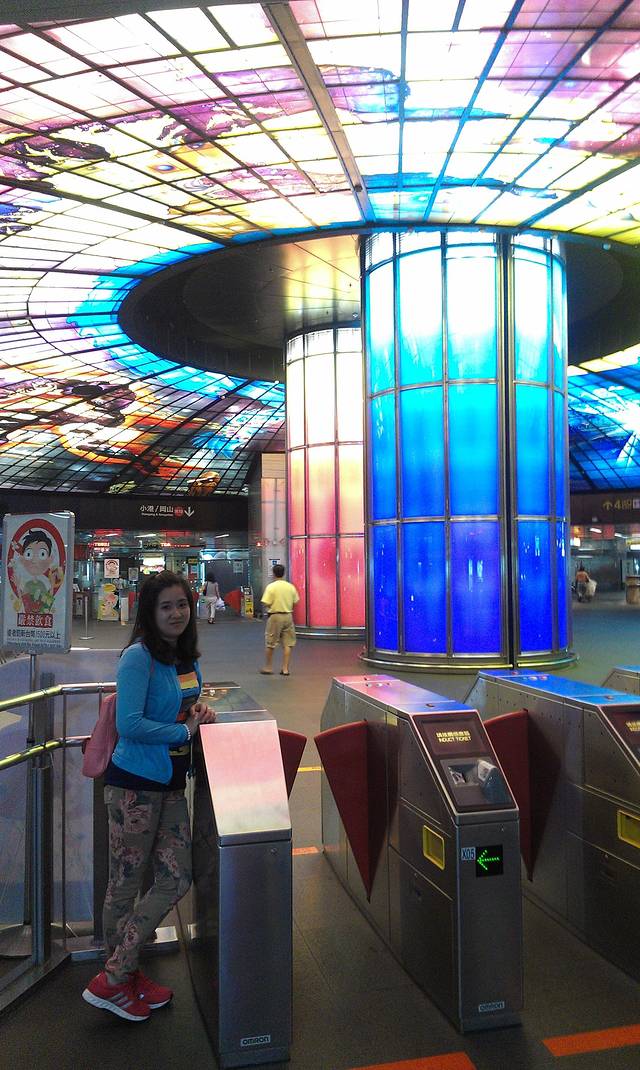 从捷运左营站到达美丽岛站,由于我们没有买捷运套票,因此在这一天都是用现金买的票,也没有优惠了哦~然后,当当当当,全世界最美的捷运站到咯~真的和照片一样~很漂亮~~~