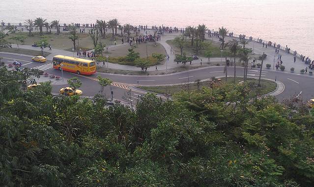 这次貌似又走的不近,到盐埕埔坐捷运,出发西子湾。下了捷运,迎面遇上个小帅哥给我们指路,然后发现他是租车行的,再然后,被他忽悠租了两辆自行车,200nt环西子湾,自行车也可以上船,不过我们没有再坐。没有啦,其实我们计划就是租车的,顺便啦,没那么容易被帅哥迷惑,hoho。骑上自行车,出发~带着小哥给我们的地图一路骑到西子湾的尽头“国立中山大学”,台湾的大学果然和大陆的不一样,从景色上来说就差好远!从中山大学出来,推着车欣赏西子湾的日落,好美啊!真想时间就停留在这一刻,在西子湾有个观日落的平台!走过落过不要错过啊!一定要上去看一看!
