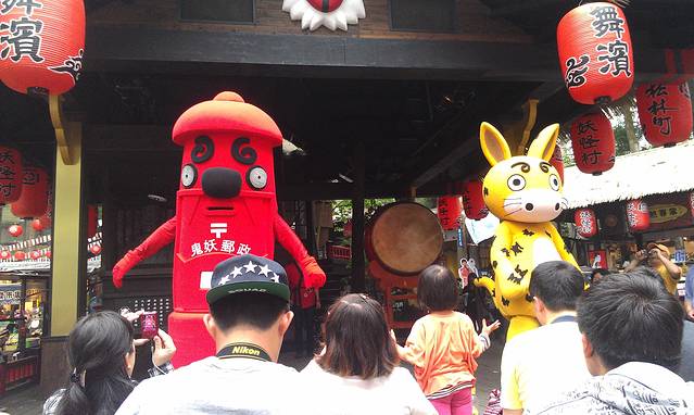 放下行李,我们坐11点台湾好行去了溪头妖怪村,途径集集镇,我们没有下去逛,不过有网友说不错,有时间的朋友可以去看看。妖怪村是一个日本文化的村子,整个村子建筑都是日系的!这里的纪念品值得推荐,都好可爱的!到了半点和整点时还会有人扮成小妖怪和游客 互动,我们去的时候赶上的是巴豆妖和邮筒,好可爱的!舞蹈跳得也很厉害,还跳了我偶像罗主任的舞蹈,太幸运了!之后我们买了咬人猫面包,味道还不错,每人限购两个,要排队哦!美食嘛,推荐稞夫人家的凉糕,好像是什么古早味什么的,具体也不是很清楚,很好吃就对了,还有樱桃小番茄,很可爱,味道和番茄差不多没什么特色!这个可以寄明信片,都是很有特色的~