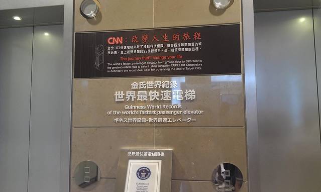 从国父纪念馆走路就可以到台北101了,这是台湾的地标建筑,最高点。首先可以在1-5层逛一逛,都是昂贵的消费品!然后既可以在5层搭乘世界最快的电梯到101的观景平台,大概80多秒,不过耳朵会有一点压力哦,像坐飞机的感觉。电梯小姐好漂亮的,而且电梯的梯顶有星光的图案,很漂亮。进去之后免费领取导览哦,因为我们去的时候又是下大雾,感觉自己像是在云的上面生活,地下的建筑物时有时无,也挺有意思的!