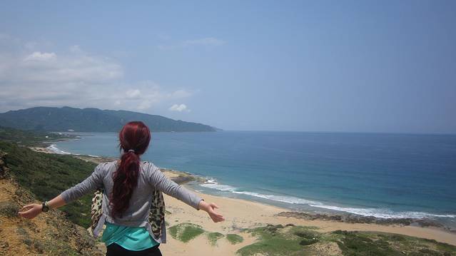 我们的民宿定在大湾,哇哇哇,景色那叫个美~尤其是打开阳台看见的那片海,随便照下就是明信片的感觉~而且后面就是垦丁大街,地理位置非常好。就是老板不是太热情,自己拿着行李搬4楼,确实是个问题~让老板找了租车的人,准备开始我们的骑车之旅~租车开始我们预算很高,网上查过800/天,两辆车,两个人,就是3200nt。后来我俩商量下,闺蜜没有骑电动车的经验,我骑车载她,又因为没有到完整的48小时,半夜又实在用不到,和老板划价,最后老板居然吐口只要800nt,太爽了~比预算便宜3/4~带上我们的安全帽,在小哥的指导下,我们晃晃悠悠出发了!~