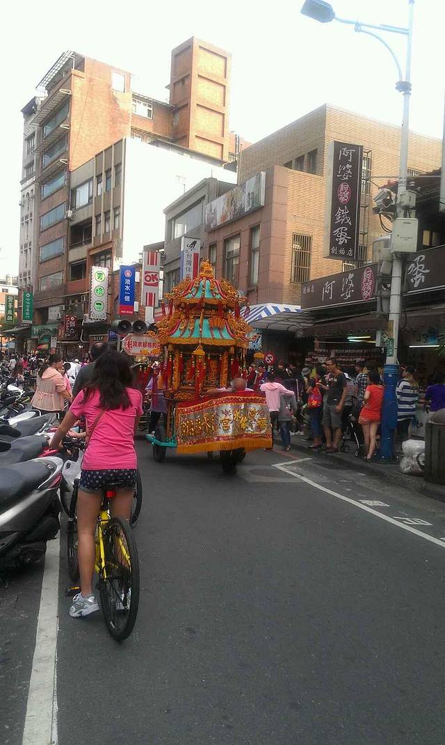 来到淡水老街,就一个字,吃,各种吃~位于新北市的淡水总是在台湾的偶像剧里面听到过的地方,从捷运站走出来就能看到金色海岸,有条木栈道可以在海边慢步,我们去的那天还赶上有人在街头表演,如果给他小费还可以合影呢!顺着海边就可以找到淡水老街,首先在淡水老街上我们先去了珍奇馆(PS:这里都是一些罕见的动物和人物,例如两个头的乌龟、巨大的兔子和蟒蛇等等,值得一看究竟),然后那就是不得不提的美食,我们提前在网上查询了多种美食,包括曾记的阿给(这个东西好像天津的卷圈儿的做法,但是很美味)、鱼丸汤(在大陆几乎都是面做的,在台湾果然真材实料)、还有我和闺蜜最喜欢吃的阿香虾卷(卖虾卷的是个阿嫲,从不与人交流,钱放在台子上,买几个告诉她,自己找零,自己抹酱),饮品我们品尝了阿妈的酸梅汤(PS:不符合大陆人的口味,感觉像是用话梅泡的水)和柠檬爱玉(柠檬汁很好喝,但是那个爱玉籽不太好吃,或许是个人口味的问题,台湾本地人很推荐)。之后我们看到了好多人排队的蛋糕店,由于当天取消了北投温泉的计划时间较富裕就去排队了(PS:如果买起司的是不需要排队的,如果是原味的是需要排队),但是真的很值得,真的很好吃!那天去的时候正好赶上妈祖过生日,吼吼,好多的花车游行,还有人偶游行,好壮观啊!