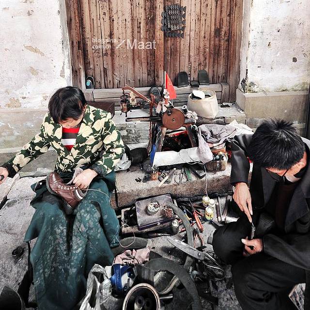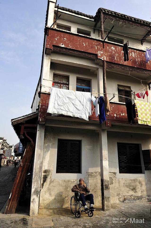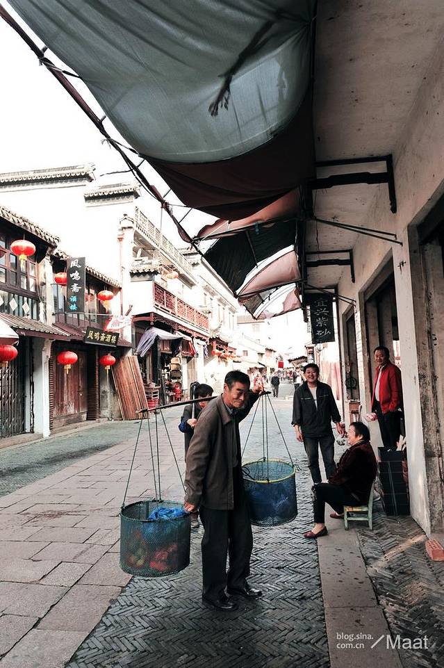 早起,街坊邻居们互相搭话儿问好。这样的一个古镇,想必谁跟谁都是相熟的。 镇子街上也有一些店铺:卖糕饼、古玩、首饰、紫砂、工艺品的;博物馆则有古董、根雕、家具、没数、砖瓦、钱币、名人、金石等,琳琅满目。在这样的街上闲逛,心境就是:一路走来一路歌~ 楼下晒着太阳的大爷,这里没有拥挤的车流和有害的尾气~ 相比较北京大爷您真幸福多了。