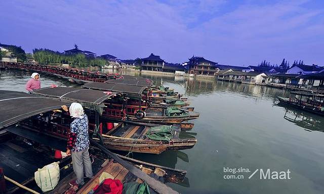 禅院前,是一字排开的乌篷船,摇船的一色全是身穿蓝色印花布、扎着头巾的船娘。船娘们一边慢慢地摇着船,一边曼声唱着黄梅调或者民歌,歌声很是清亮,在水上飘着,于是,人恍恍忽忽的,便沉浸在那种悠悠闲闲、家乡般的氛围里了。