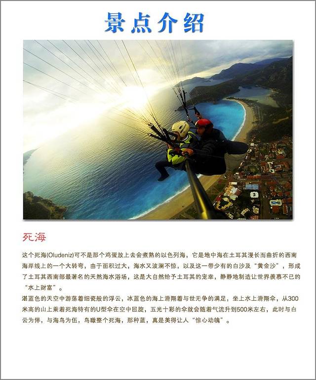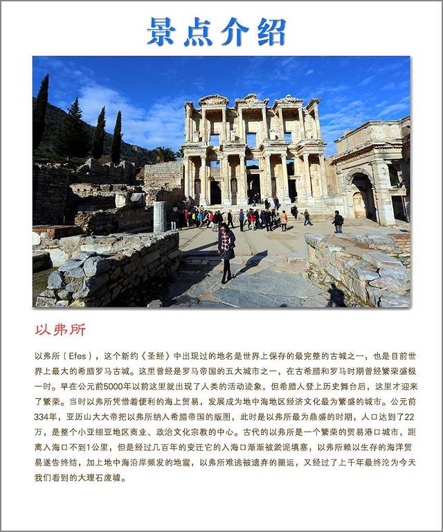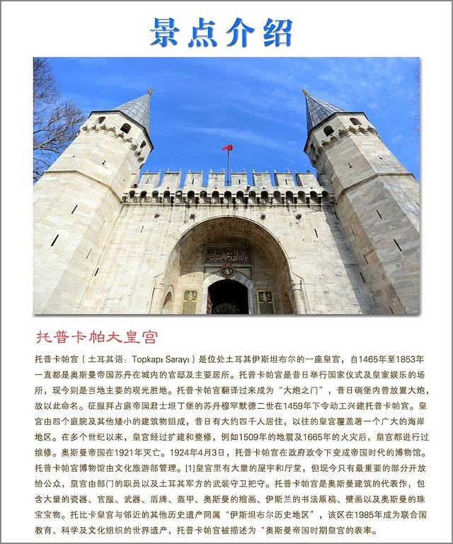 拥有多重性格的土耳其一向是人们心中介于中东和东欧之间的模糊而神秘的地域。土耳其不仅拥有地跨欧亚两大洲的独特地理位置,更令人惊奇的是它还分别沿爱琴海、地中海和黑海构造出了整个疆域轮廓。西部有伊斯坦布尔(Istanbul),棉花堡(Pumukkale),爱琴海港口伊兹米尔(Izmir),艾菲索斯(Ephesus)等,中部有首都安卡拉(Ankara),卡巴多西亚(Cappadocia),东部有人头山,南部有安塔利亚(Antayla),费特希耶(Fethiye)等一系列地中海度假胜地。土耳其拥有极其丰富的旅游资源,类型大体分为三种:历史人文古迹(Istanbul,Izmir,Ephesus,Ankara),自然地貌风景(Cappadocia,Pumukkale)和海滨度假(Antayla,Fethiye)等等。