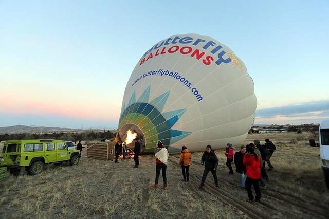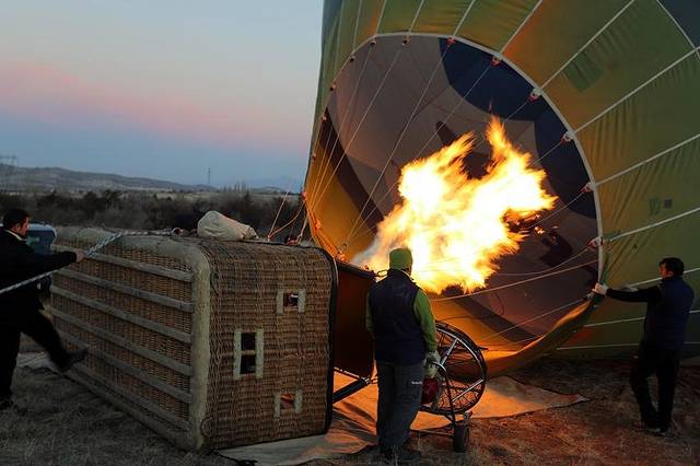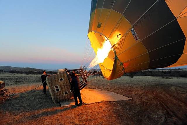 等我们到达的时候,已经有工作人员在给热气球灌热气了。
