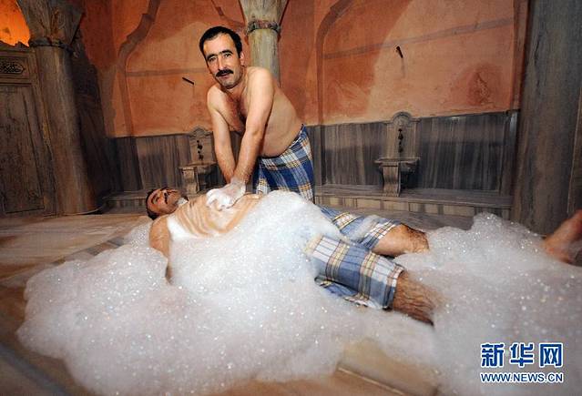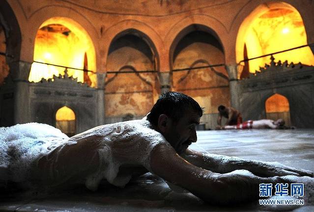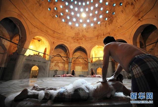 之后会有大腹便便的土耳其大叔来带去你冲个澡,然后让你躺在一个发热的大石板上。