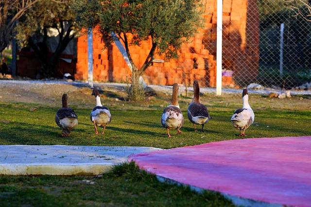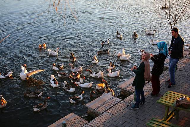 阿瓦诺斯小镇的河边,几个在喂食鸭子的外国友人