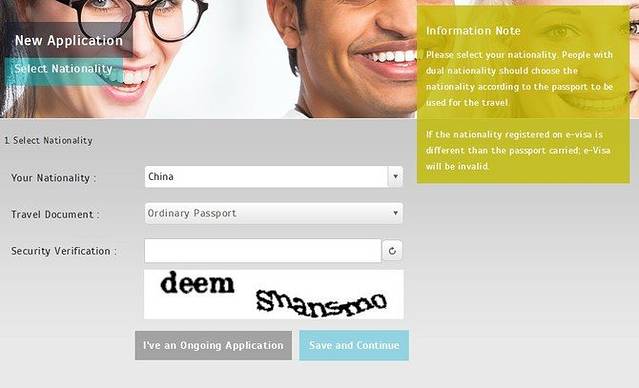 进入后跳转到申请界面,按照相应要求选择国籍和护照种类,输入验证码即可,点保存继续