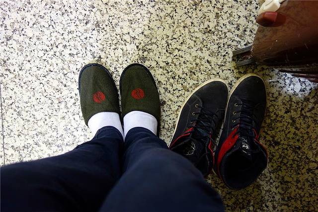 由于出来匆忙,啥都没带,故随便把相机放地上,定时合照1P~
