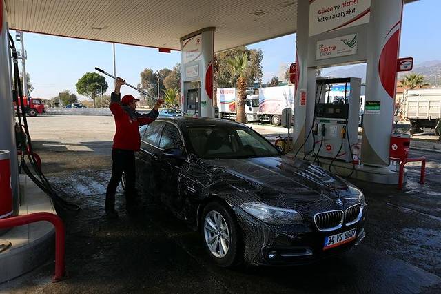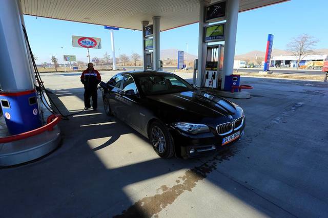最后一次给小黑马加油了。。因为必须留1/4以上的油还车才不用扣钱。。
