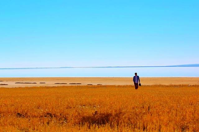 图兹湖盐湖就在大路边,自驾的话可以把车停在路边,然后穿过马路走下去就行了。