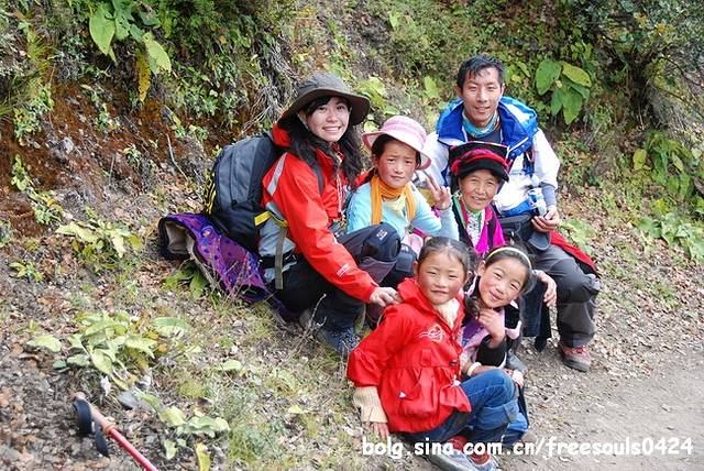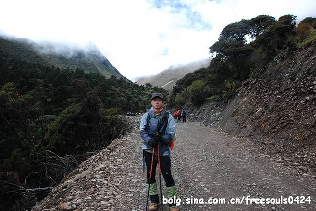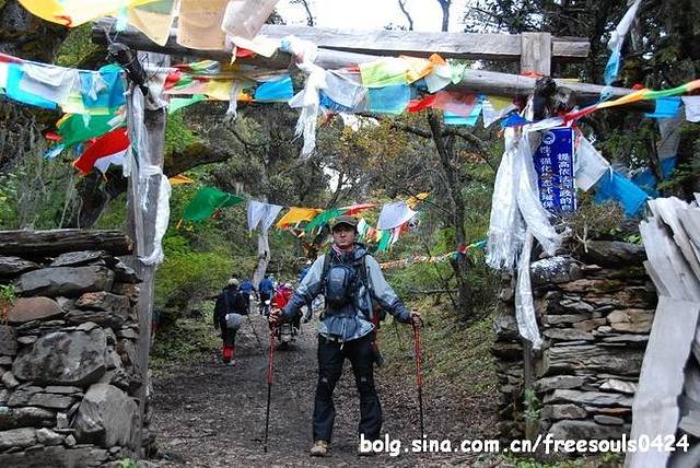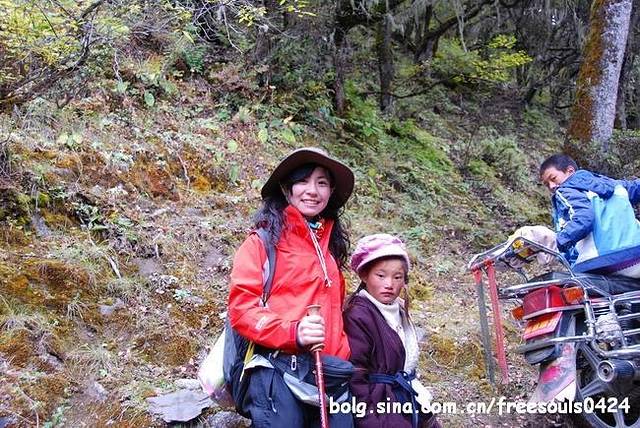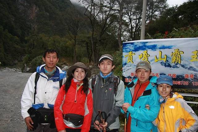 刚从子梅垭口下来,脑海里挥之不去的是贡嘎主峰的壮美的身影,相比之下,眼前的景色便显得索然无味。有些机械地走着,前面迎面而来的是一个牵着马的姑娘,马背上坐着一个小伙子,走近一看,竟是小刚和小刚主锁。尽管知道她们十一会来贡嘎,但是能碰见还是颇感意外。小五北东一别,再无联络。尽管北东的很多队友,后来成了一个大家庭,可她们从未参与,无论是网上回帖、聊天,还是网下爬山、聚饭,人跟人的缘分真是很奇妙的事情。我们相互招呼,然后各自往相反方向走去。