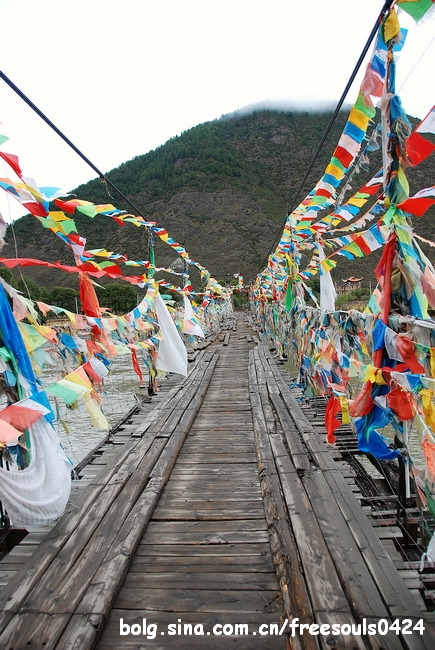 填饱肚子,溜溜达达地出来,泸定 桥上人满为患。我们对风景名胜一向兴趣寥寥,只是站在外围照了几张纪念照。相信很多人跟我一样,对泸定 桥的映像停留在儿时的课文——《飞夺泸定 桥》上,回来查了资料,了解到泸定 桥位于中国四川 省西部的大渡河 上,是一座由清朝康熙帝御批建造的悬索桥。人们常称之为大渡河 铁索桥,是甘孜 州的门户,康藏交通的咽喉,是四川 内地通往康藏高原的重要通道。