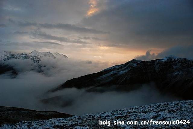 藏民回来了,带着一把零钱。我拍拍屁股起来,跟他道一句“谢谢,再见”。再看一眼贡嘎主峰,然后转身,爬上最后一个上坡。我在营地溜达了一圈,找到我们的两个大包,这时龙舞也上来了,我们赶紧搭起帐篷,趁着还有光线,想去拍几张主峰。
