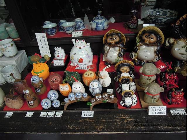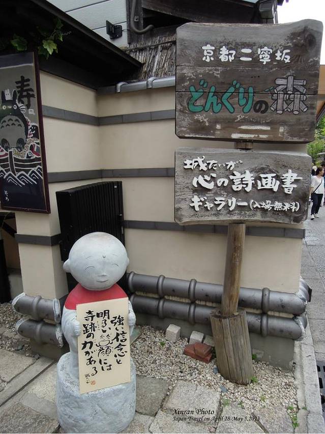 14:00 在荞面家吃了荞麦面,很贵,但是味道不错,虾非常新鲜,我们进去可能是因为有中文菜单吧。然后就是逛街了,二年坂和三年坂,是很有名的旅游点了,周边都是店铺,各式的瓷器、和服、都很かわぃ。石板的街道,蒙蒙细雨,熙熙攘攘的人群,逛起来很有感觉。