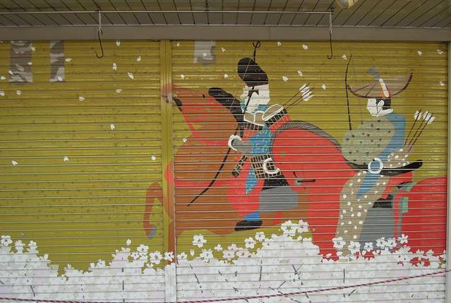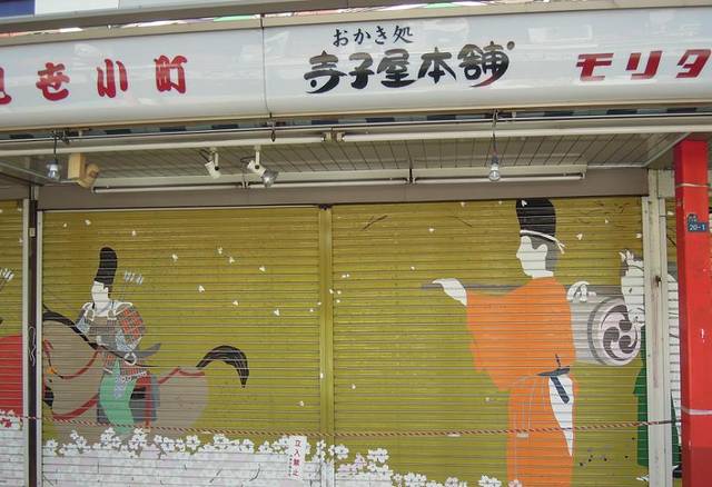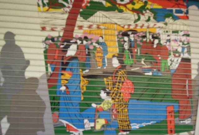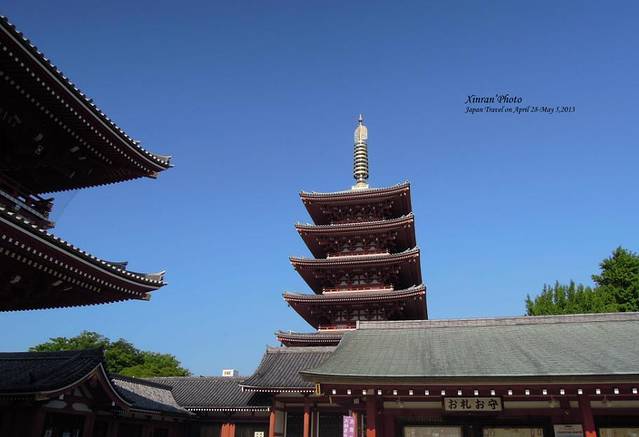 6:40 浅草寺 因为前一天已经探过路了,今天就直奔浅草寺。浅草寺是东京都内最古老的寺庙,寺内的五重塔是日本第二高塔,仅次于东寺的五重塔。大门就是大大的雷门,雷门与本堂之间的街道名为“仲见世”,两边都是应该是出售纪念品的商铺,这时还比较早,还没有开,可以看到挡板上的浮世绘,很有特色。浅草寺的商业气息太重了,雷门大灯笼还是松下电器赞助的;正殿里就设了3-4个抽签的摊位。从侧门出来,看到一座年代久远的石桥,还有一个偏殿,供着十二生肖神,这倒是和国内是一样的,抄袭吧?!看得兴致索然,我们想想,还是去迪士尼吧。
